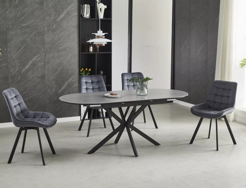 Masa extensibila GASTON CERAMIC GREY 140 din ceramica cu efect de marmura gri, metal negru 140-180x80xH75cm