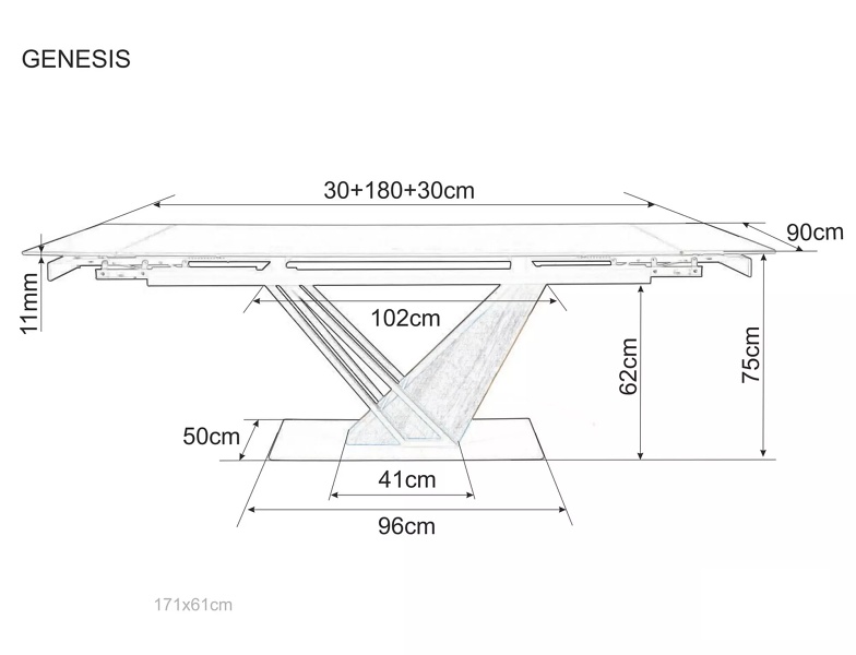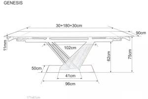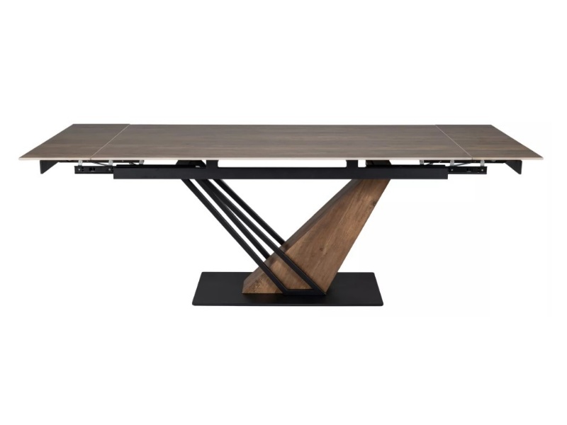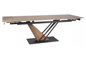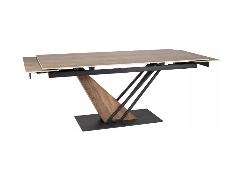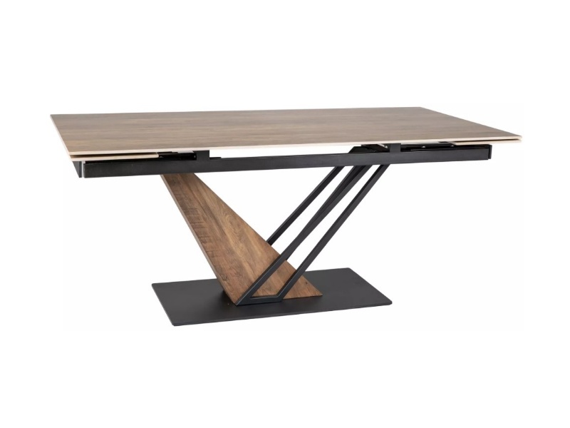 Masa extensibila GENESIS LEGNO din ceramica cu efect de lemn, metal negru si MDF stejar 160x200x90xH75cm