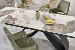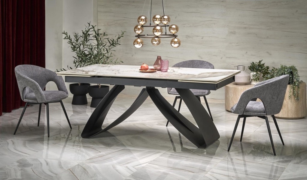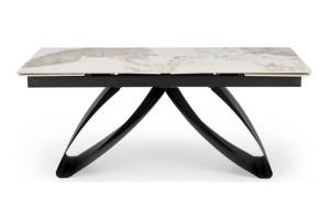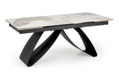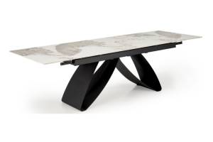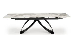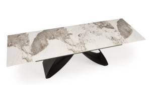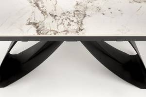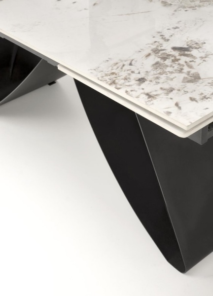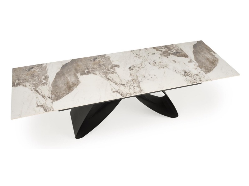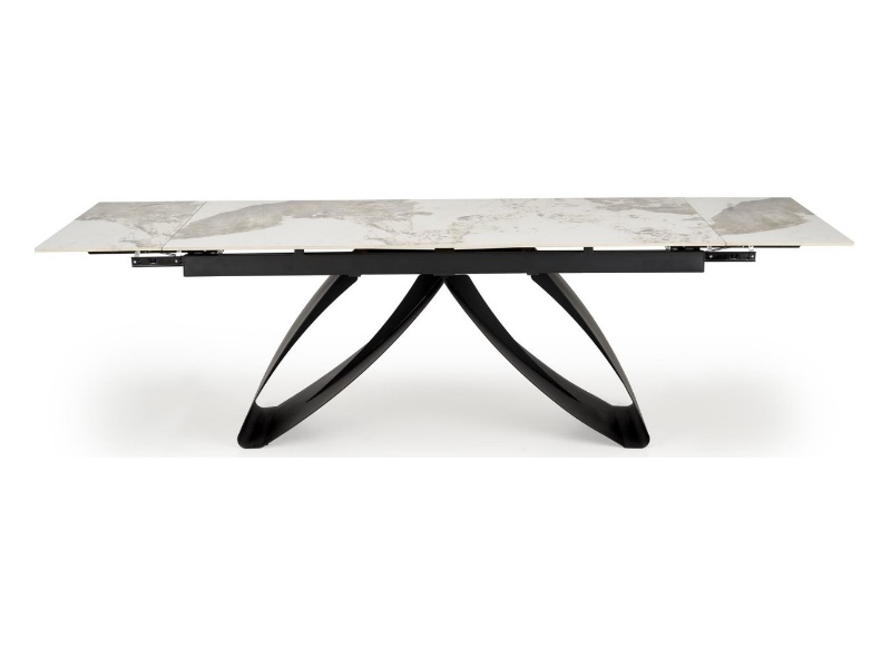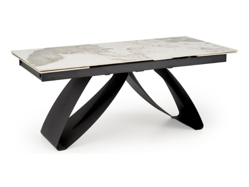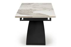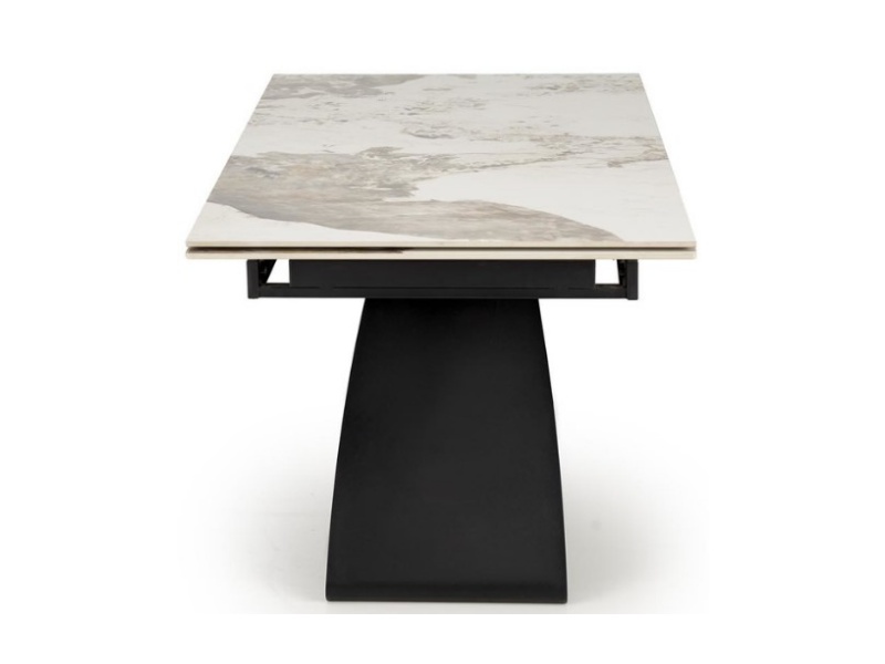Masa extensibila HILARIO WHITE din piatra sinterizata cu efect de marmura alba, metal negru 180-260x90xH75cm