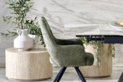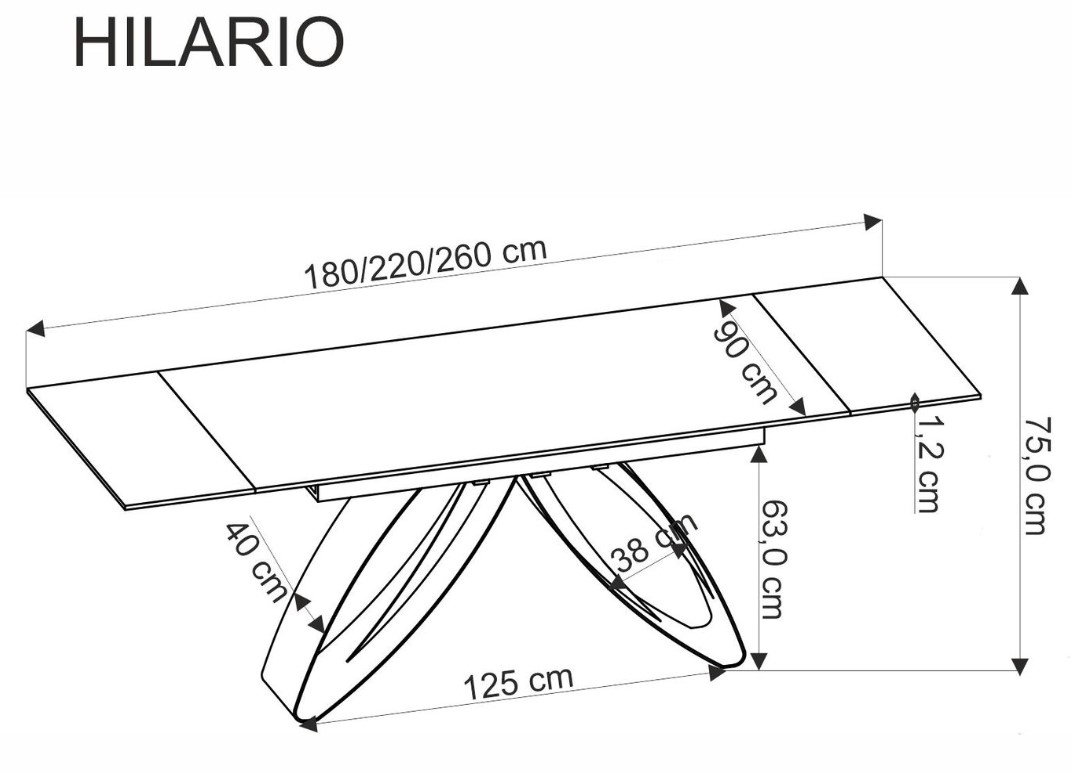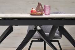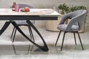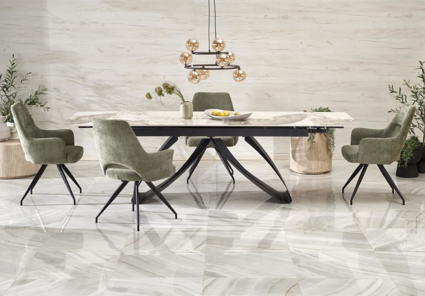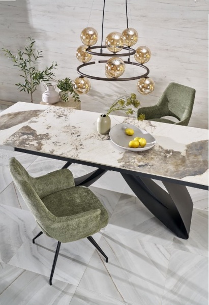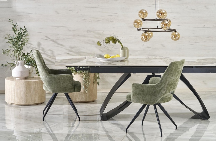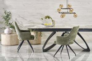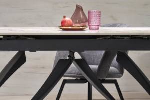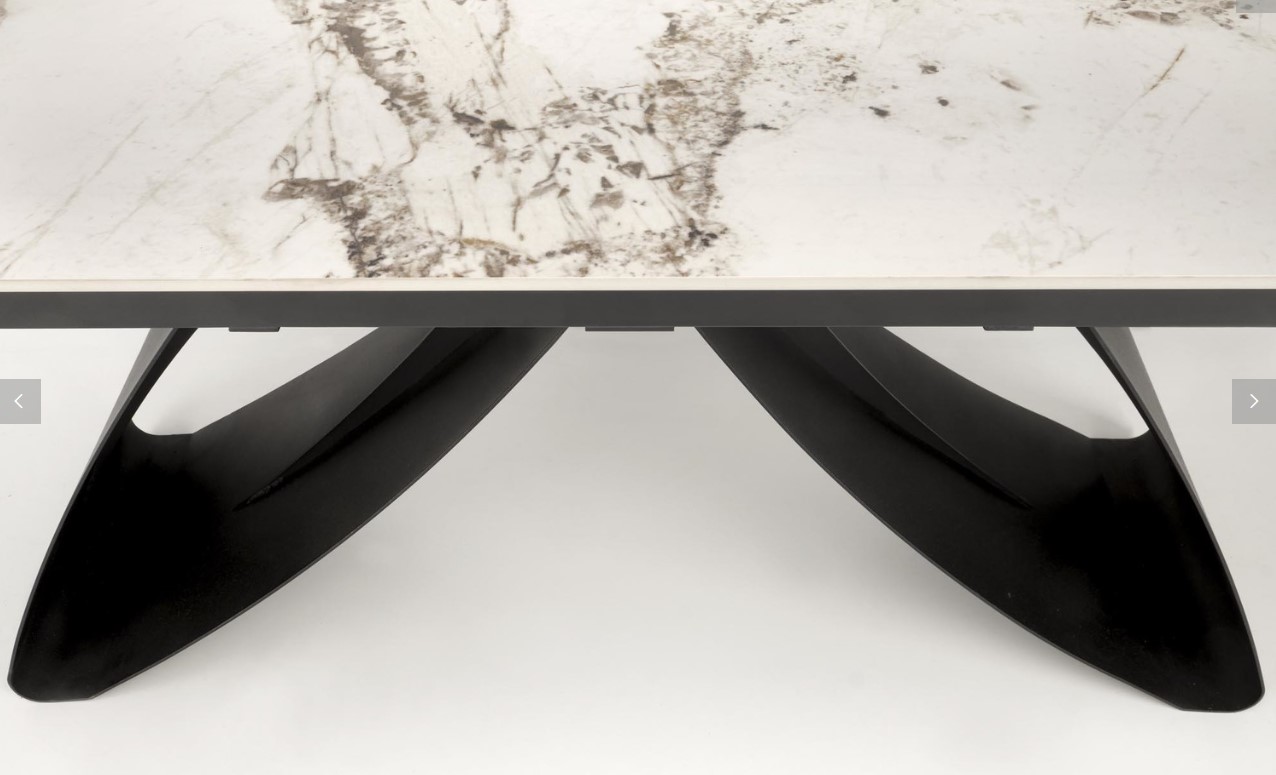 Masa extensibila HILARIO WHITE din piatra sinterizata cu efect de marmura alba, metal negru 180-260x90xH75cm