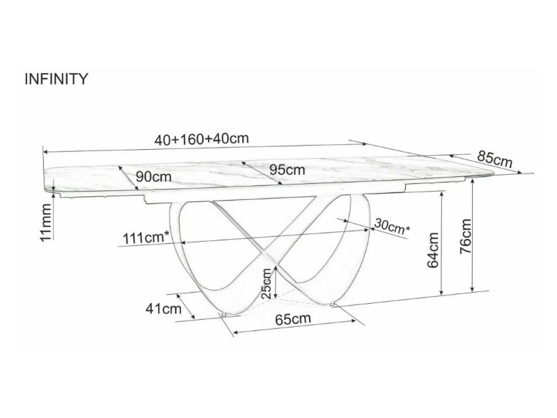 Masa extensibila INFINITY CERAMIC CLOUD din ceramica cu efect de marmura Nature Cloud alba, metal negru 160-240x95xH76cm