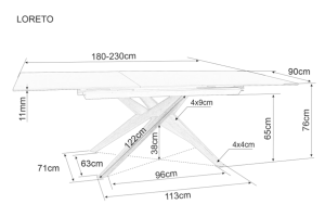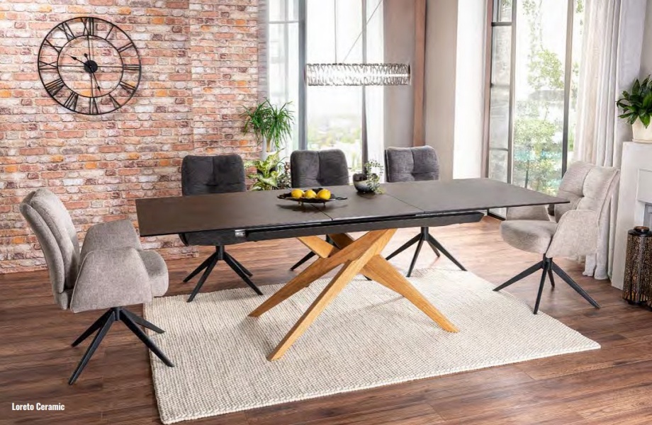 Masa extensibila LORETO CERAMIC din ceramica Italian Ossido Bruno si sticla securizata maro 180-230x90xH76cm