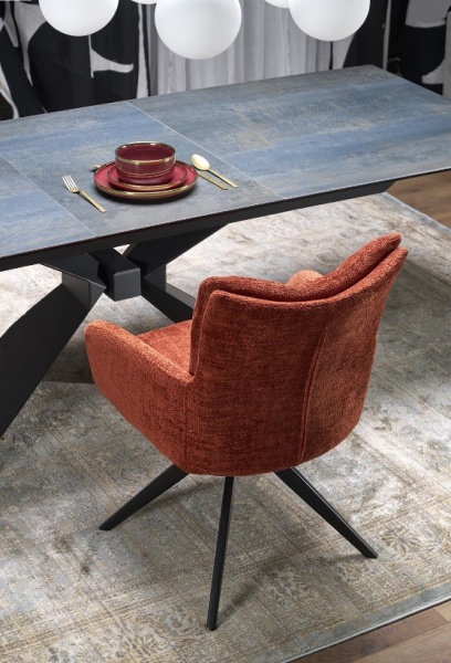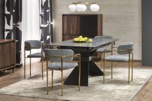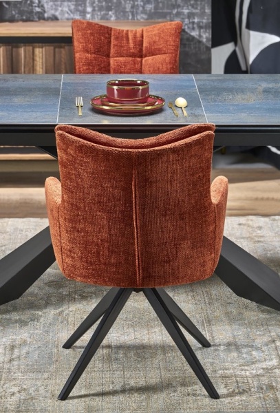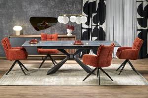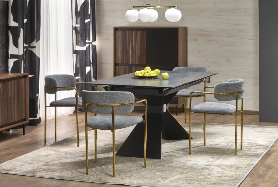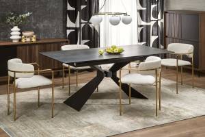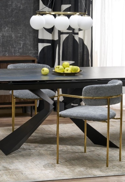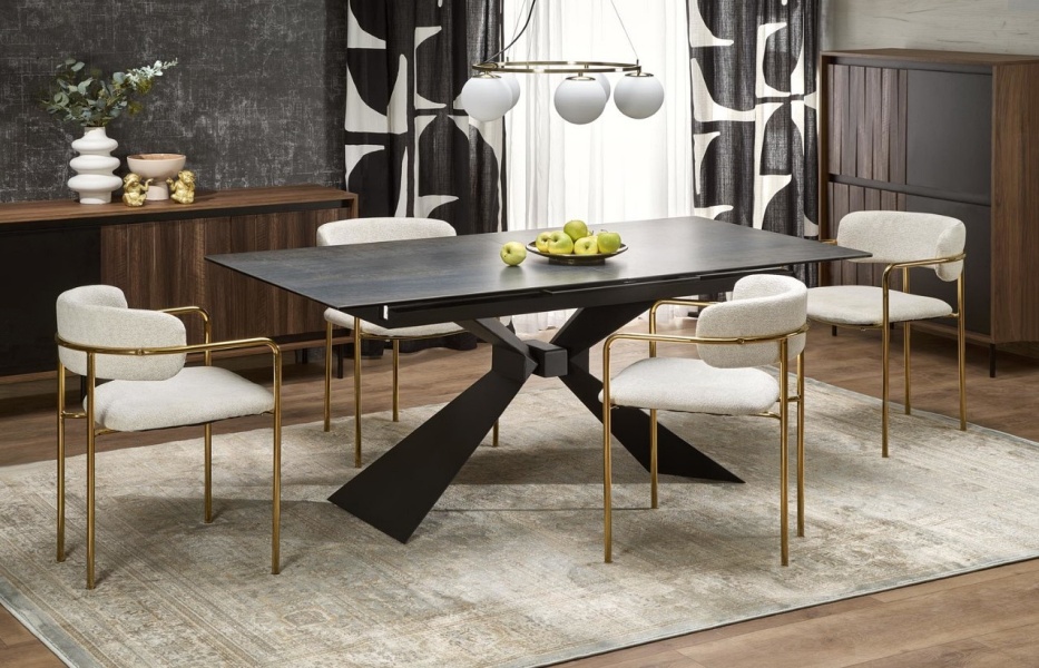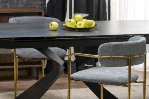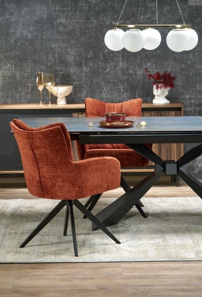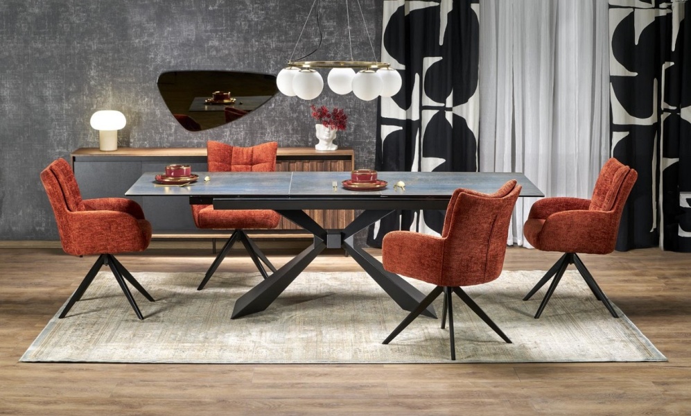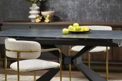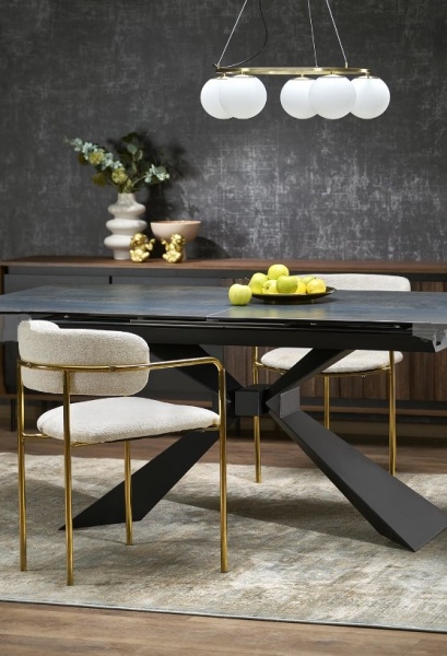 Masa extensibila LUCIANO din ceramica cu efect de marmura albastra, metal negru 180-230x90xH76cm