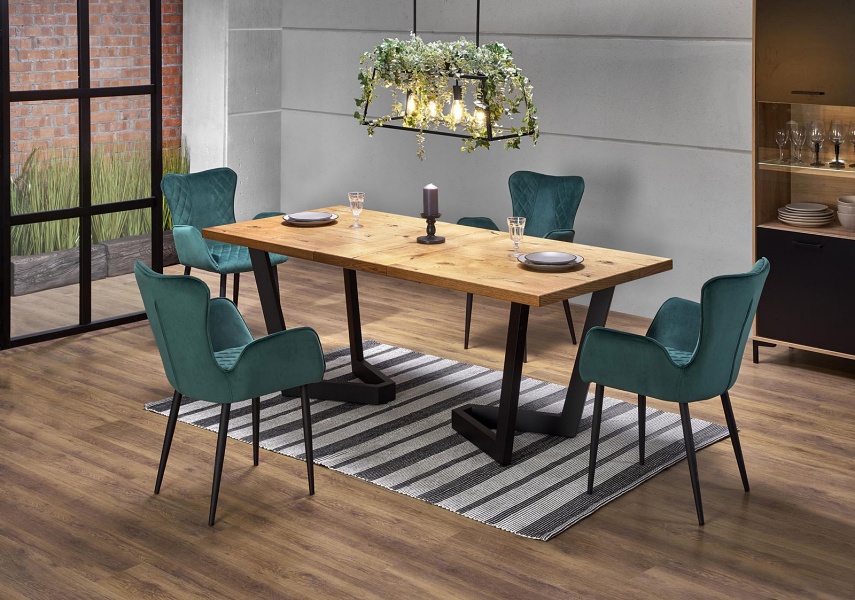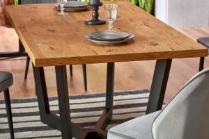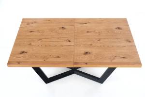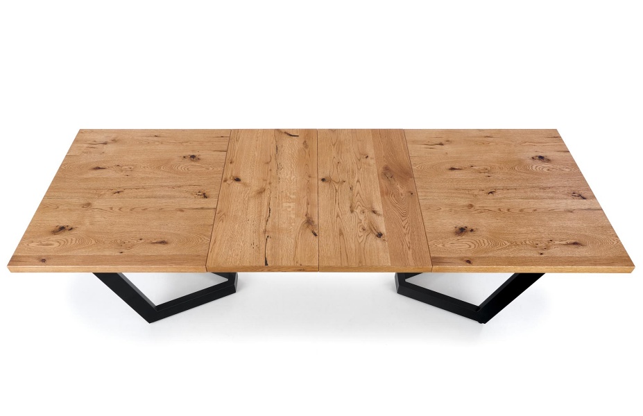 Masa extensibila MASSIVE din placa furniruita si lemn masiv stejar deschis, metal negru 160-250-340x90xH77cm