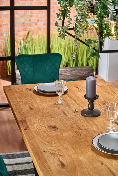 acoperit cu furnir, menit sa sublinieze aspectul rustic si unic al blatului.