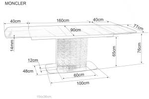 Masa extensibila MONCLER CERAMIC BLACK din ceramica cu efect de marmura Sahara Noir negru metal gri argintiu 160-240x90xH76cm