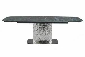 Masa extensibila MONCLER CERAMIC MARINE din ceramica cu efect de marmura italiana Verde Alpi, metal gri argintiu 160-240x90xH76cm