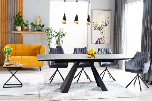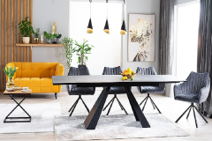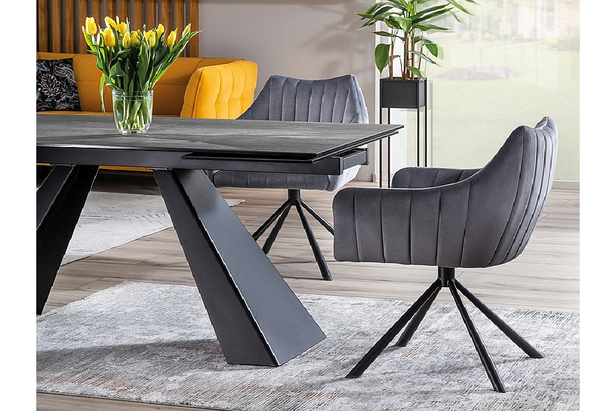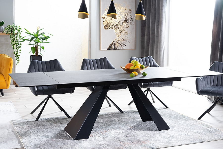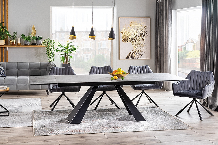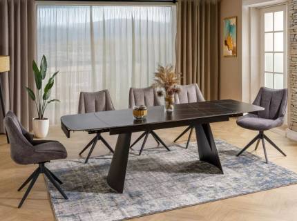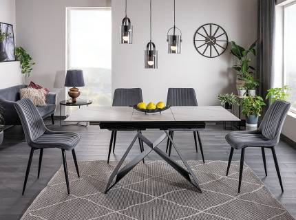 Masa extensibila SALVADORE CERAMIC din cramica cu efect de marmura gri, metal negru 160-240x90xH76cm