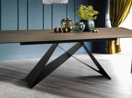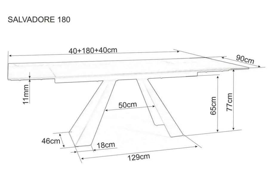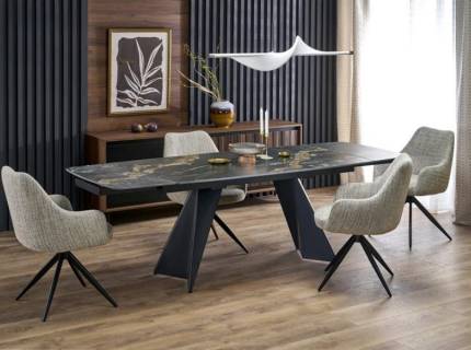 Masa extensibila SALVADORE CERAMIC din cramica cu efect de marmura gri, metal negru 180-260x90xH76cm