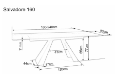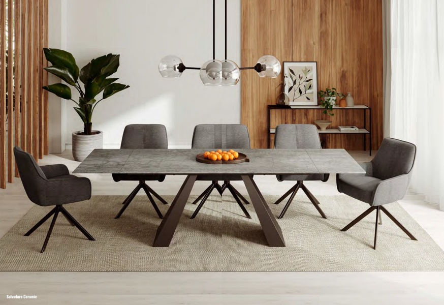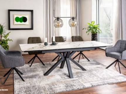 Masa extensibila SALVADORE CERAMIC GREY din ceramica cu efect de marmura Piatra de Savoia, metal negru 160-240x90H77cm