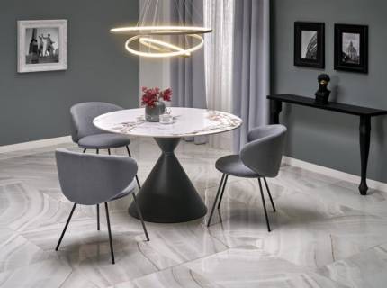 Masa extensibila SENTO GREY din ceramica gri lucios, lemn negru 120-180x80xH75cm