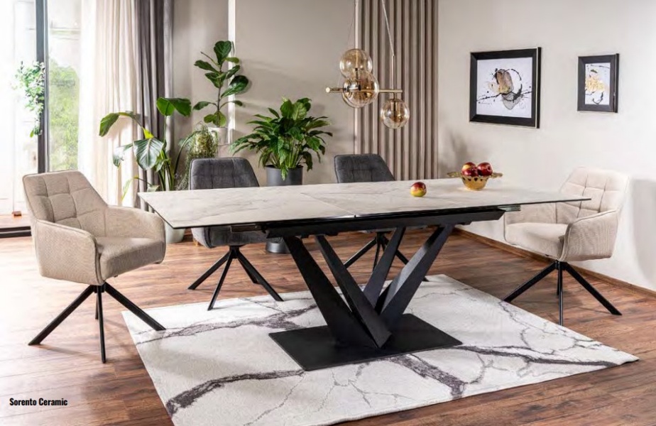 Masa extensibila SORENTO CERAMIC CLOUD din ceramica Nature Cloud alba, metal negru 160-220x90xH76cm