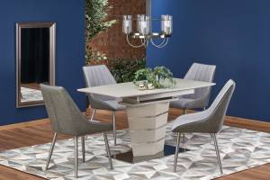 Masa extensibila SORENTO din MDF si sticla sampanie, metal crom 140-180x80xH76cm
