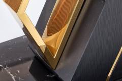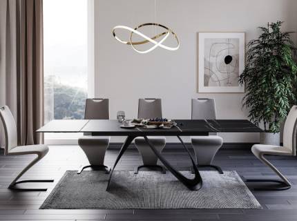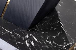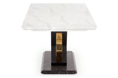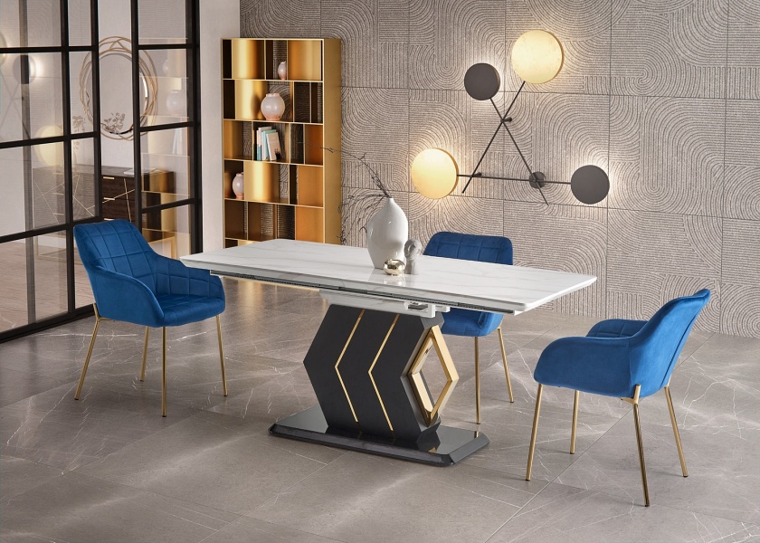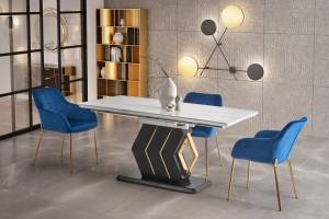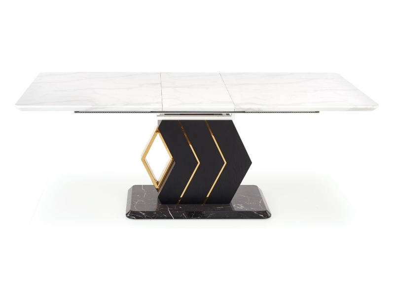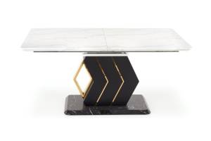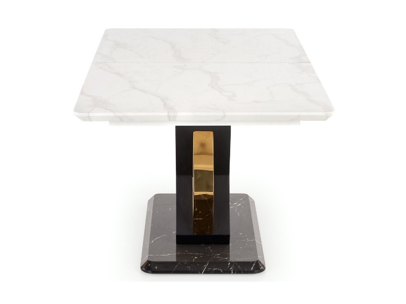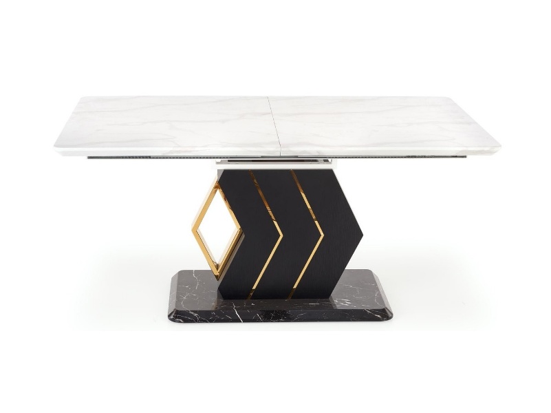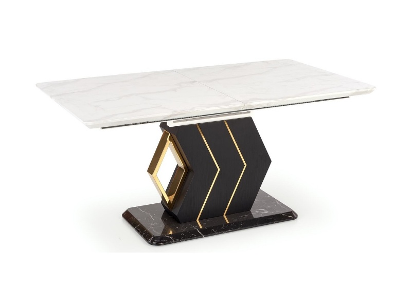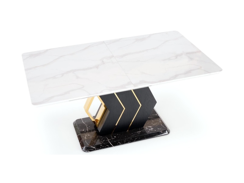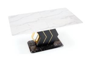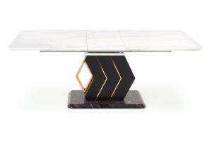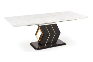 Masa extensibila VINCENZO din MDF cu efect de marmura alba, metal negru si auriu 160-200x90xH77cm
