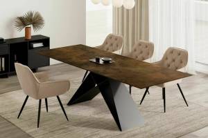 Masa extensibila WESTIN CERAMIC OSSIDO BRUNO din ceramica italiana Ossido Bruno maro, metal negru 160-240x90xH77cm