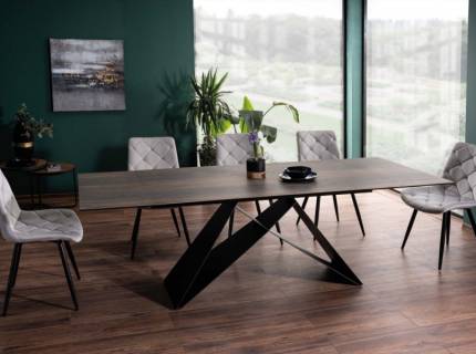 Masa extensibila WESTIN II din sticla securizata termorezistenta cu efect de piatra negru mat, metal negru 160-240x90xH76cm