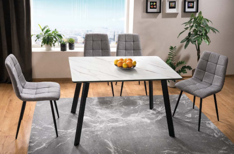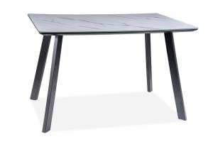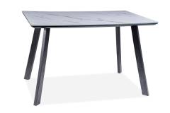 Masa SAMUEL din MDF si sticla cu efect de marmura alba, metal negru 120x80xH75cm