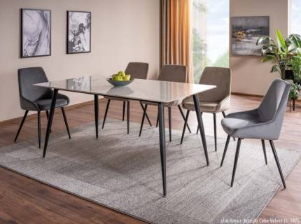 Scaunele NU sunt incluse in pret dar se pot achizitiona separat: https://www.mobelhaus.com/cauta?termen=kayla