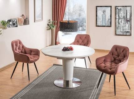 Scaun tapitat CHIC VELVET catifea somon pink 50x58xH88cm, picioare negre