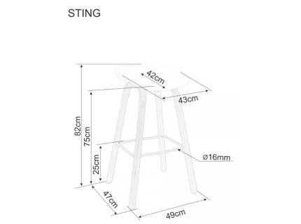 Scaun pentru bar STING alb 49x47xH82cm, piciaore stejar