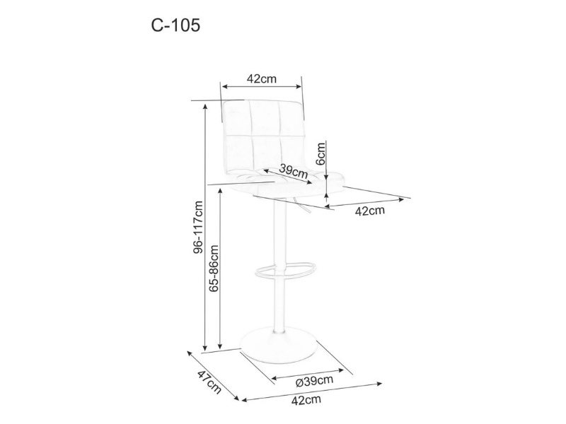 Scaun tapitat pentru bar C-105 VELVET reglabil pe inaltime, catifea grey 42x47xH96-117cm, picior negru