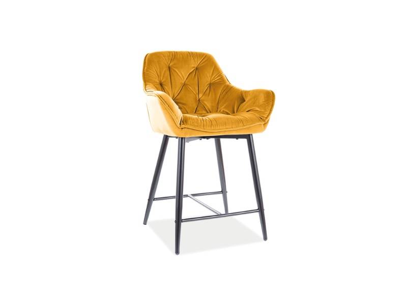Scaun tapitat pentru bar CHERRY VELVET H-2 catifea curry 56x56xH87cm, picioare negre