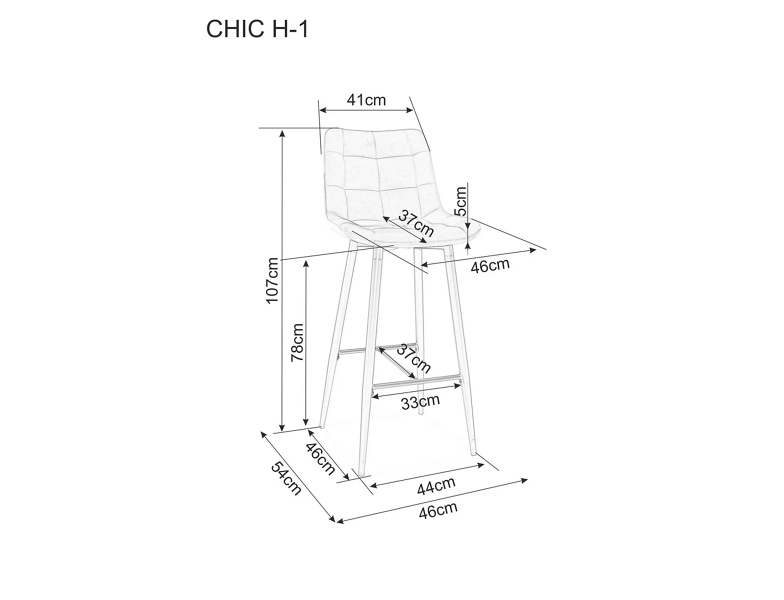 Scaun tapitat pentru bar CHIC H-1 VELVET catifea grey 46x54xH109cm, picioare negre
