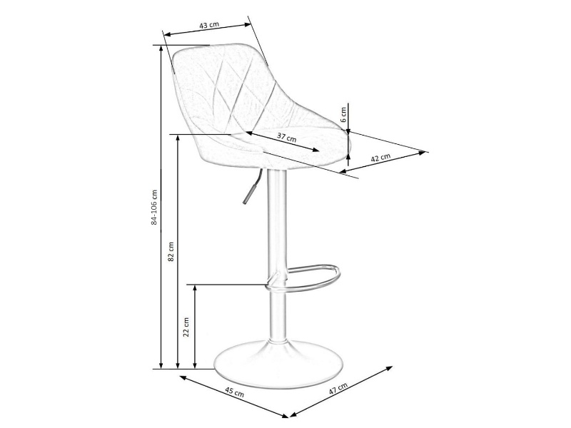 Scaun tapitat pentru bar H101 reglabil pe inaltime, catifea blue 47x45xH84-106cm, picior negru