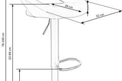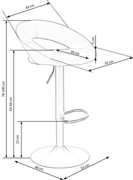 Scaun tapitat pentru bar H102 reglabil pe inaltime, catifea grey 53x48xH7-100cm, picior negru