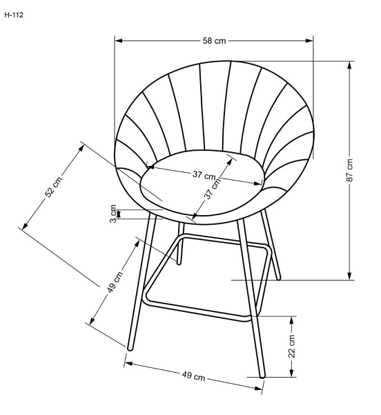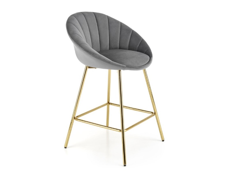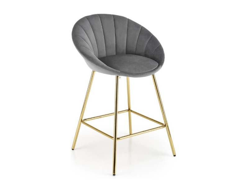 Set 2 scaune tapitate pentru bar H112 catifea grey 58x49xH87cm, picioare aurii