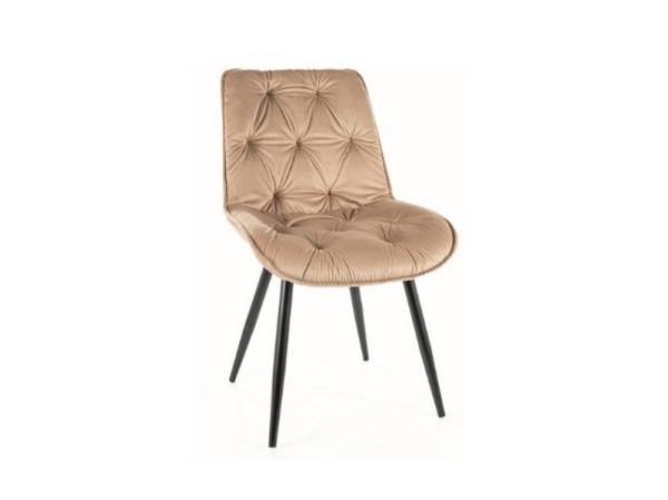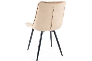 Scaun beige CHERRY II VELVET, cu tapiterie din catifea Bluvel 28 (bej) si picioare metalice negre. Un design rafinat si modern, perfect pentru interioare elegante si confortabile!
