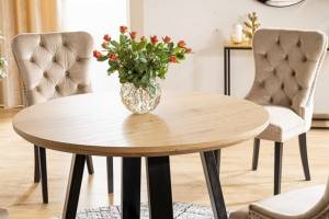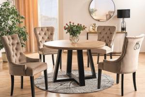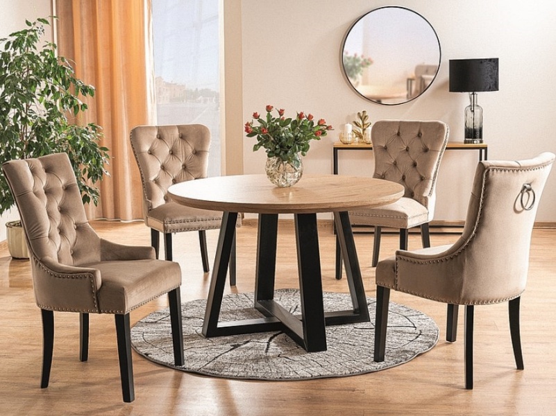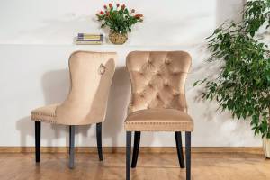 Scaun bej AUGUST VELVET cu tapiterie din catifea Bluvel 28 (bej) si picioare din lemn vopsit negru. Design sofisticat si confortabil, perfect pentru living, dining sau birou. Completeaza decorul cu un scaun elegant si modern!