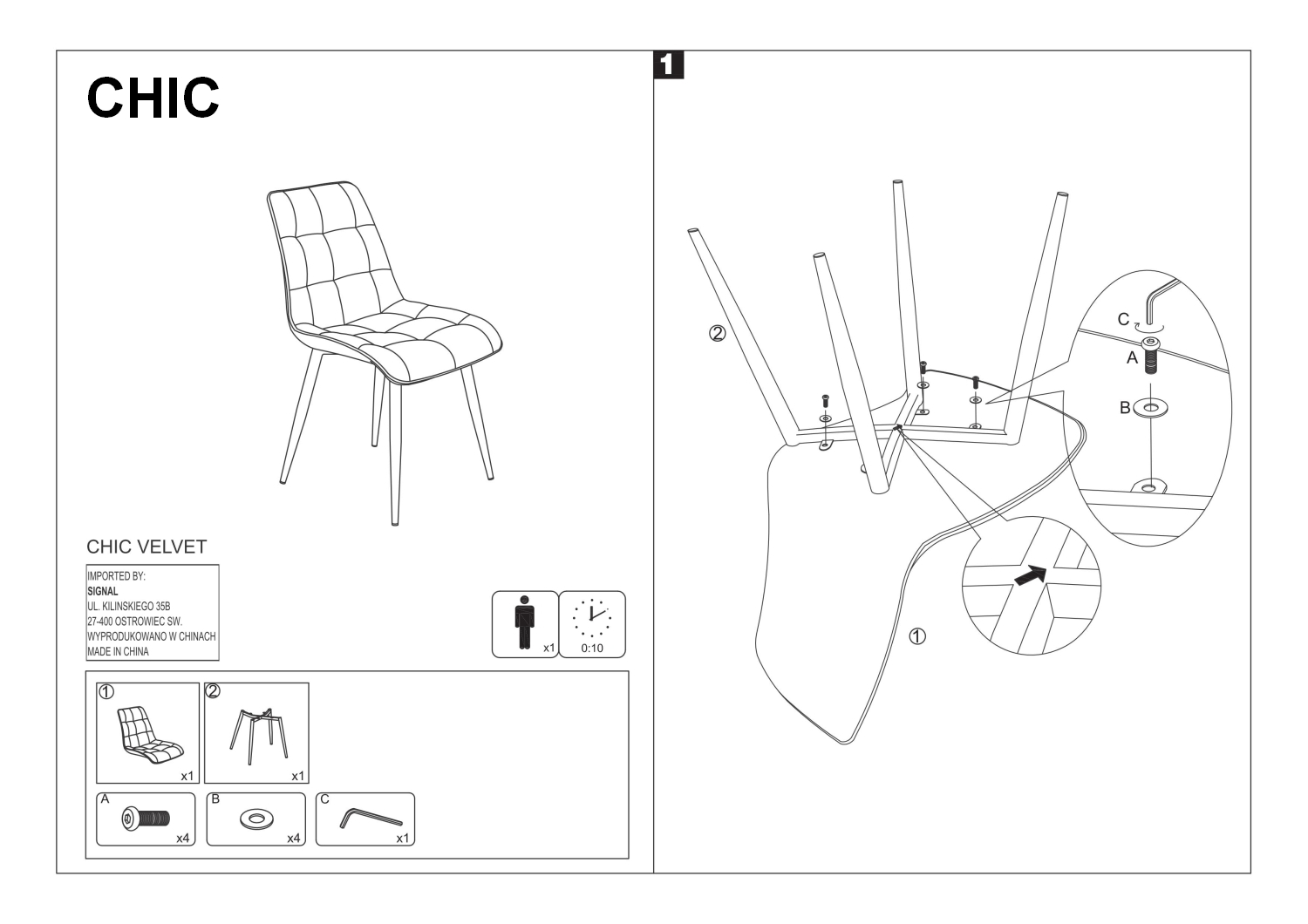 • Picioarele scaunului sunt realizate din metal vopsit in culoare neagra.