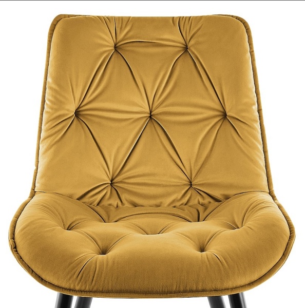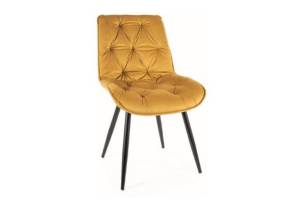 Scaun curry CHERRY II VELVET, cu tapiterie din catifea Bluvel 68 (mustar) si picioare metalice negre. Design modern si vibrant, perfect pentru a adauga stil si confort oricarui spatiu!