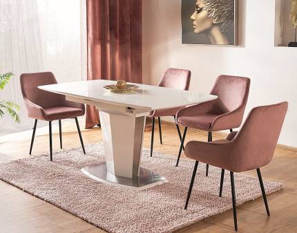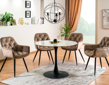 Scaun tapitat LINEA VELVET catifea beige 59x59xH82cm, picioare negre