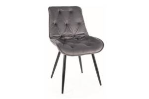 Scaun grey CHERRY II VELVET, cu tapiterie din catifea Bluvel 14 (gri) si picioare metalice negre. Design elegant si modern, ideal pentru un interior confortabil si rafinat!