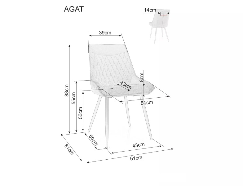 Scaun tapitat AGAT VELVET catifea blue 51x44xH88cm, picioare negre