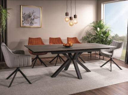 Scaun tapitat ASTORIA VELVET rotativ, confortabil, catifea beige 60x60xH85cm, picioare negre