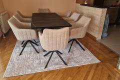 Scaun tapitat AZALIA BREGO rotativ, material textil cream 61x58xH86cm, picioare negre