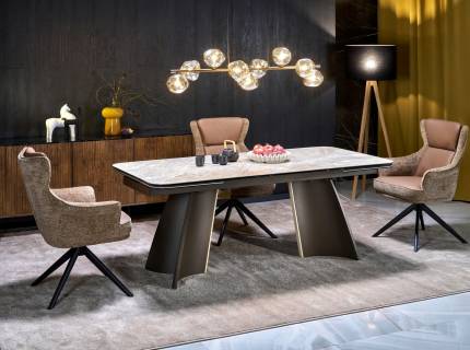 Scaun tapitat AZALIA BREGO rotativ, material textil olive 61x58xH86cm, picioare negre