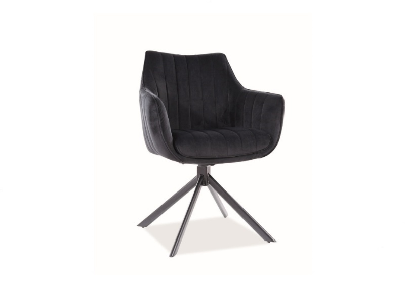 Scaun tapitat AZALIA VELVET rotativ, catifea black 61x58xH86cm, picioare negre