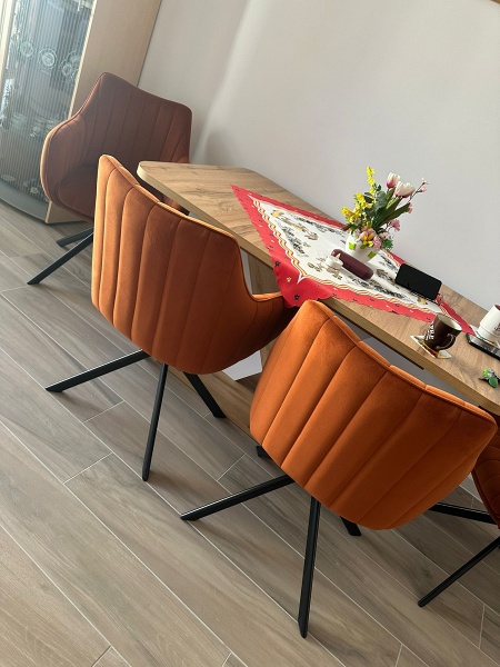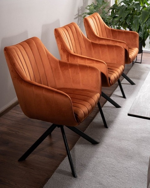 Scaun tapitat AZALIA VELVET rotativ, catifea cinnamon 61x58xH86cm, picioare negre