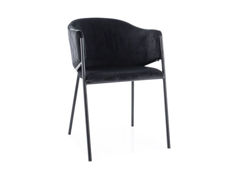 Scaun tapitat BONO VELVET design rotunjit minimalist, catifea black 55x60xH77cm, picioare negre
