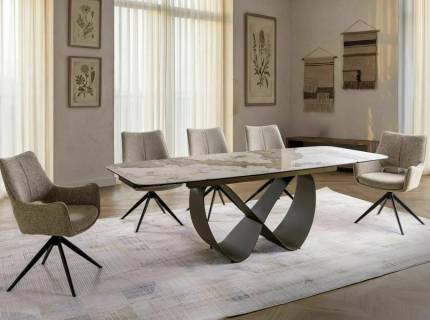 Scaun tapitat BORGO LEO rotativ, material textil cinnamon 58x60xH87cm, picioare negre