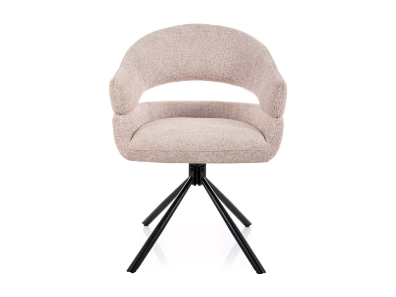 Scaun tapitat BORGO LEO rotativ, material textil light cream 58x60xH87cm, picioare negre