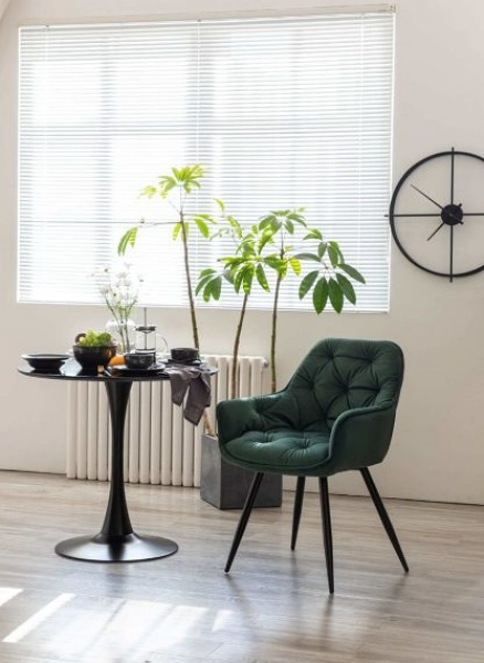 Scaun tapitat CHERRY VELVET catifea green 57x58xH87cm, picioare negre