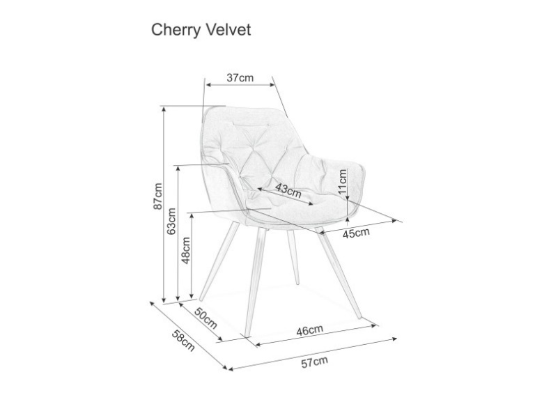 Scaunul CHERRY VELVET Green, tapitat in catifea Bluvel 78 de culoare vernil, imbina rafinamentul cu functionalitatea. Picioarele din metal vopsit in negru adauga stabilitate si un design modern, perfect pentru un interior elegant!