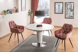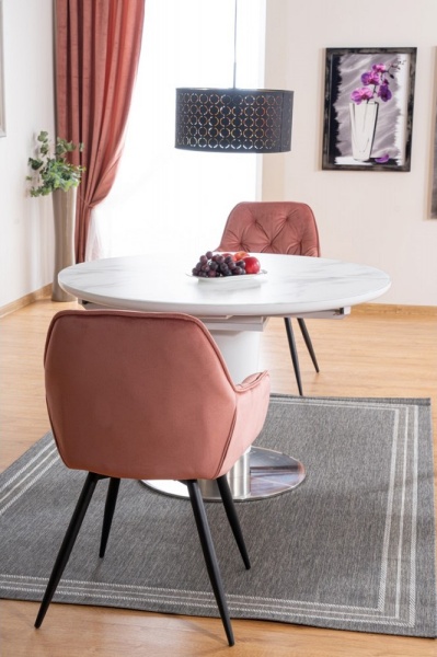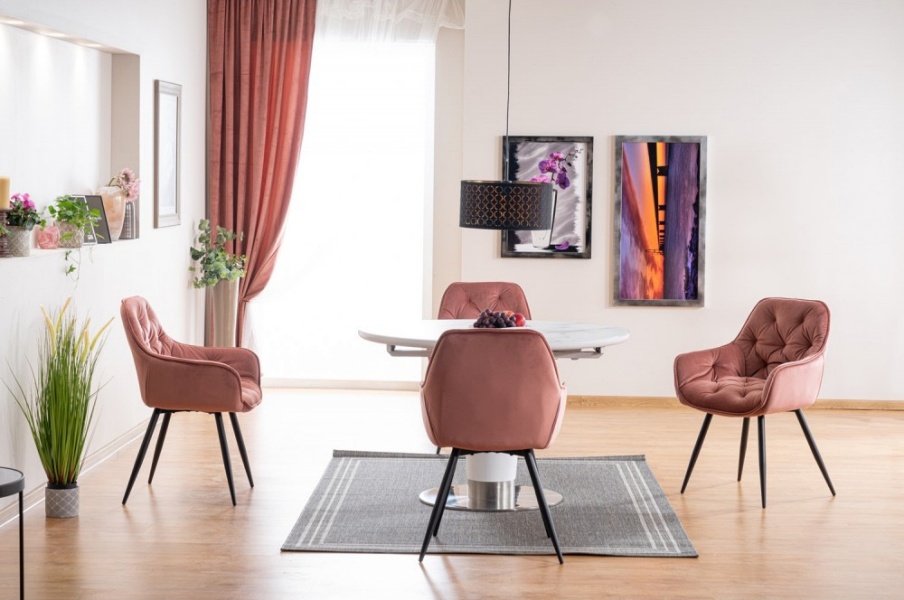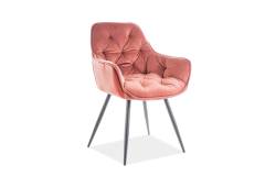 Scaun tapitat CHERRY VELVET catifea somon pink 57x58xH87cm, picioare negre