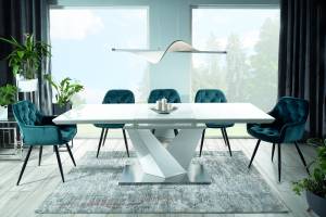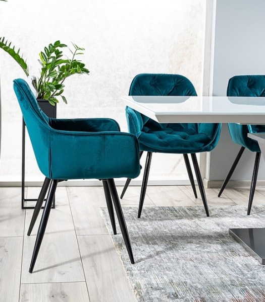 Scaun tapitat CHERRY VELVET catifea turcoise 57x58xH87cm, picioare negre