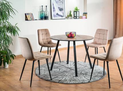 Scaun bej CHIC VELVET cu tapiterie din catifea Bluvel 28 (bej) si picioare din metal vopsit negru. Design modern si rafinat, perfect pentru living, dining sau birou. Alege un scaun elegant care imbina confortul cu stilul contemporan!